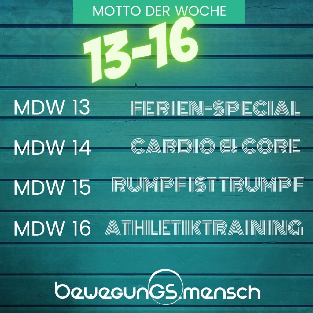 Hier werden die wöchentlichen Schwerpunkte präsentiert. Viel Spaß beim Trainieren!